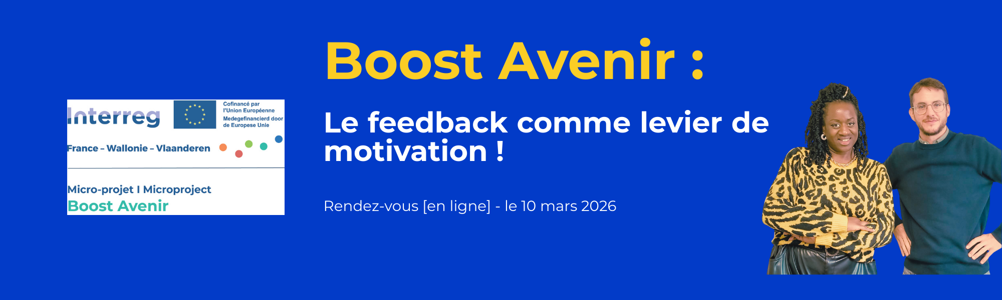 Le projet BOOST AVENIR a pour mission de favoriser l’insertion socioprofessionnelle des jeunes âgé·e·s de 15 à 25 ans à travers le mentorat, en développant des outils innovants. Il est financé par le programme de coopération territoriale européenne INTERREG France-Wallonie-Vlaanderen (FWVL) de l’Union européenne.